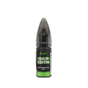 Watermelon Ice nic salt e-liquid by Riot Bar Edition pairs the sweet taste of juicy watermelons with a chilly burst of menthol on the exhale, for a cool and fruity vape.